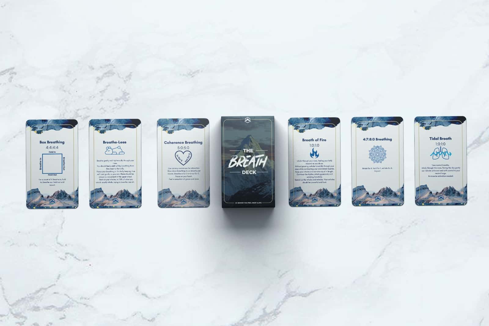 Sit with The Breath Deck, and look at all the cards. You can sequence your breath-flow, try mixing the cards around, swapping places amongst your cards and ultimately creating the best breathing sequences for yourself and your breathers.